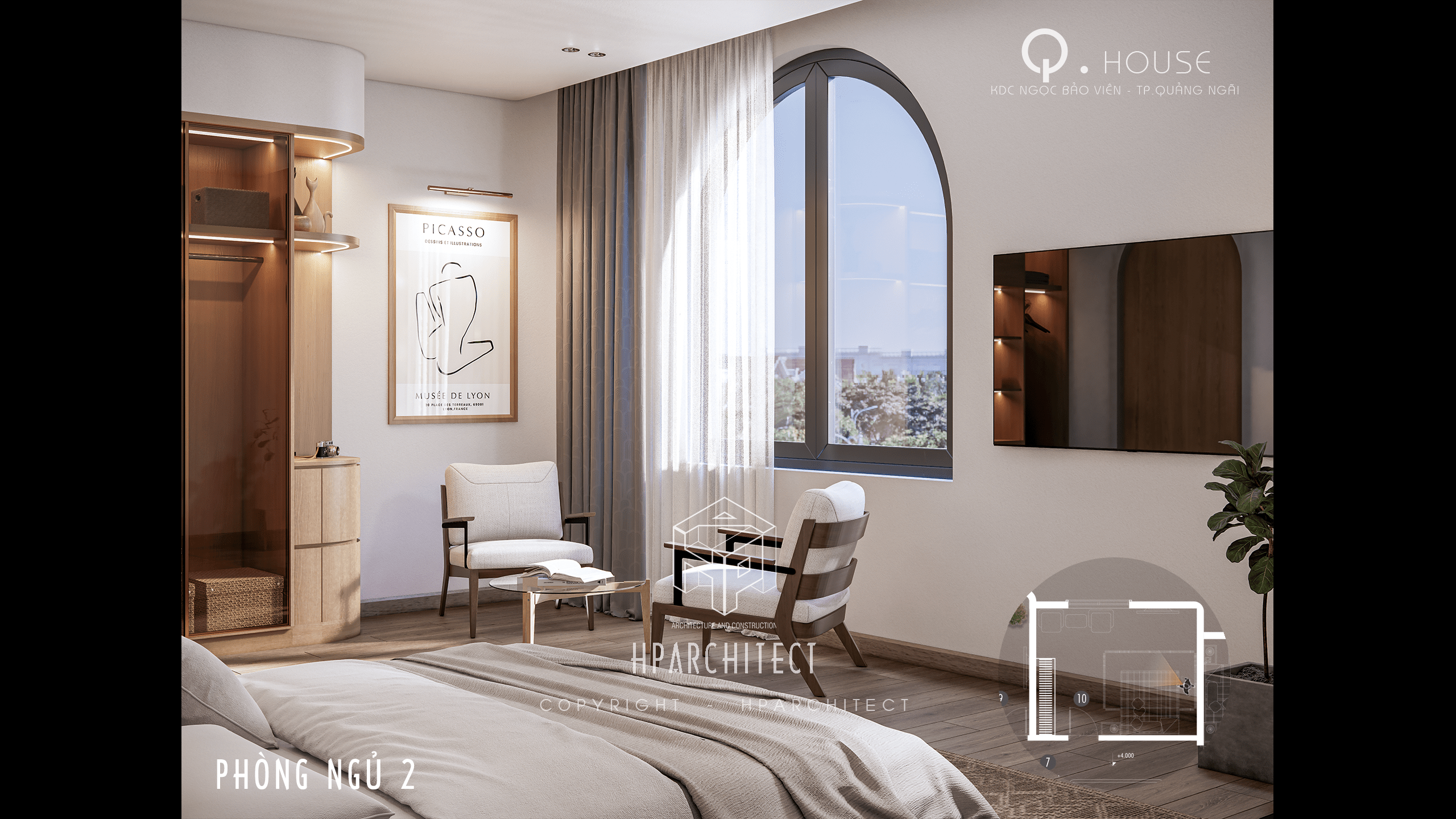 Q.House không chỉ là một ngôi nhà, mà là sự hòa quyện hoàn hảo giữa kiến trúc hiện đại và tiện nghi tối giản. Với thiết kế tinh tế, ngôi nhà nổi bật trong khu phố nhờ vào những đường nét nhẹ nhàng, cửa vòm thanh thoát và không gian mở rộng, tạo nên một điểm nhấn ấn tượng và dễ chịu.
