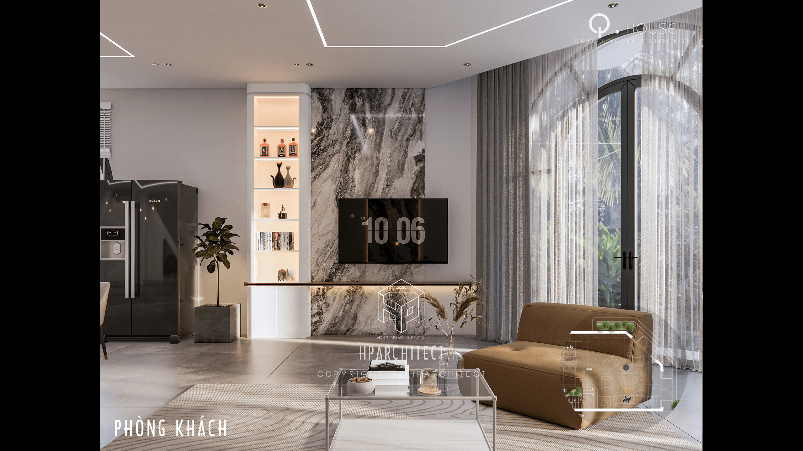 Từ Phòng Khách Đến Phòng Ngủ được lựa chọn kỹ càng với những vật liệu cao cấp như đá Marble, kính, cửa vòm mềm mại mang đến không gian sống vừa sang trọng vừa thoải mái. Các chi tiết trang trí như tranh nghệ thuật, đèn chiếu sáng hiện đại và thảm sàn cao cấp đều được bố trí tinh tế tạo nên một không gian sống hoàn hảo.