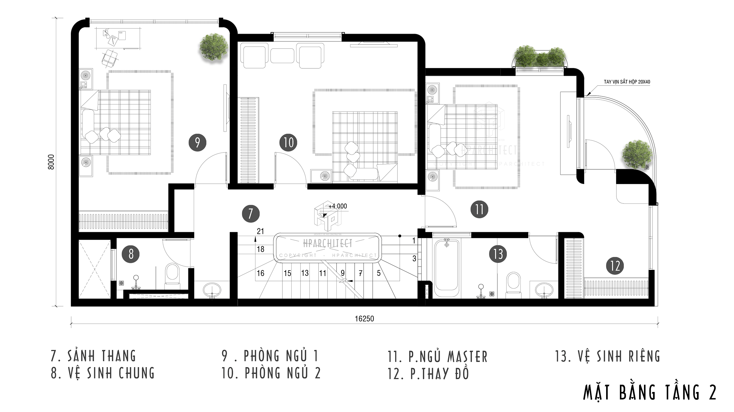 Tầng 2: Là không gian riêng biệt, mang lại sự thư giãn và nghỉ ngơi cho mọi thành viên trong gia đình với 3 phòng ngủ rộng rãi được thiết kế để mang lại cảm giác thoải mái và riêng tư.
