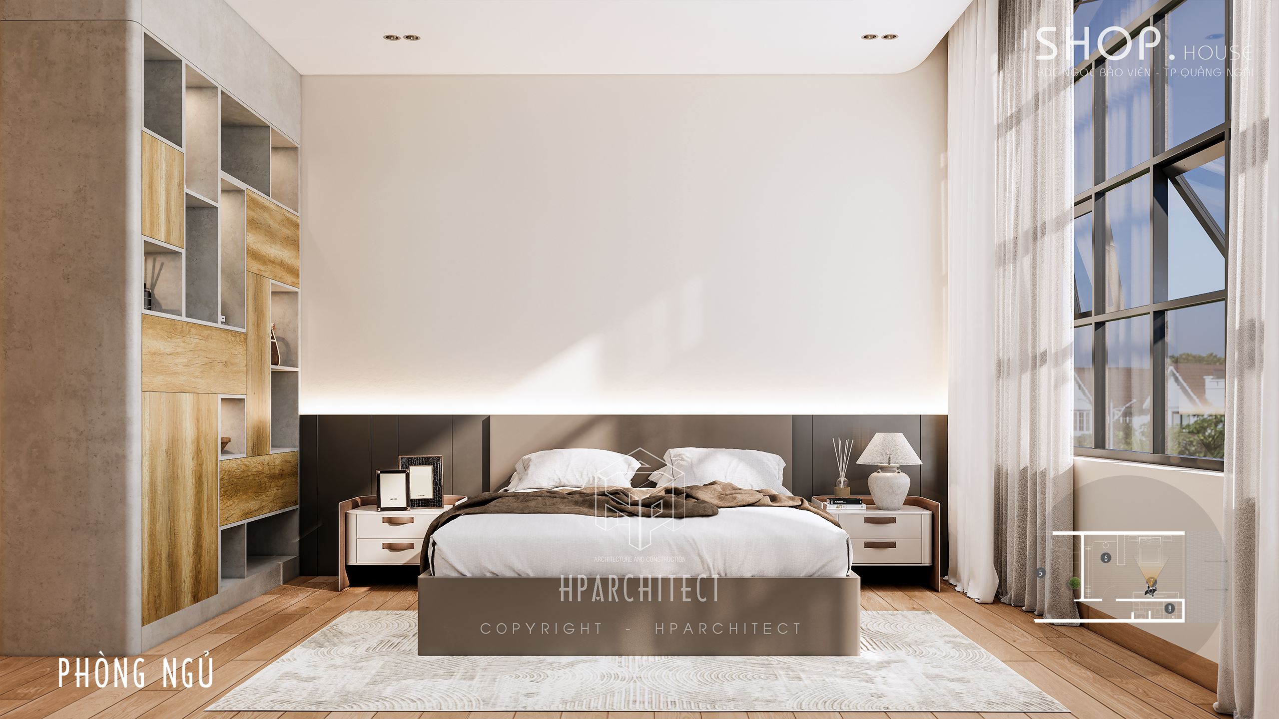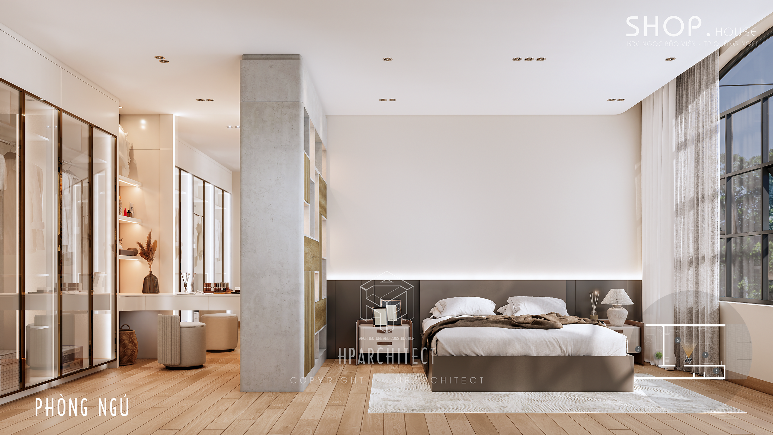 - Phòng ngủ: Không gian ấm áp và riêng tư, được bài trí tối giản, tạo điều kiện cho việc nghỉ ngơi và tái tạo năng lượng sau những giờ làm việc căng thẳng.