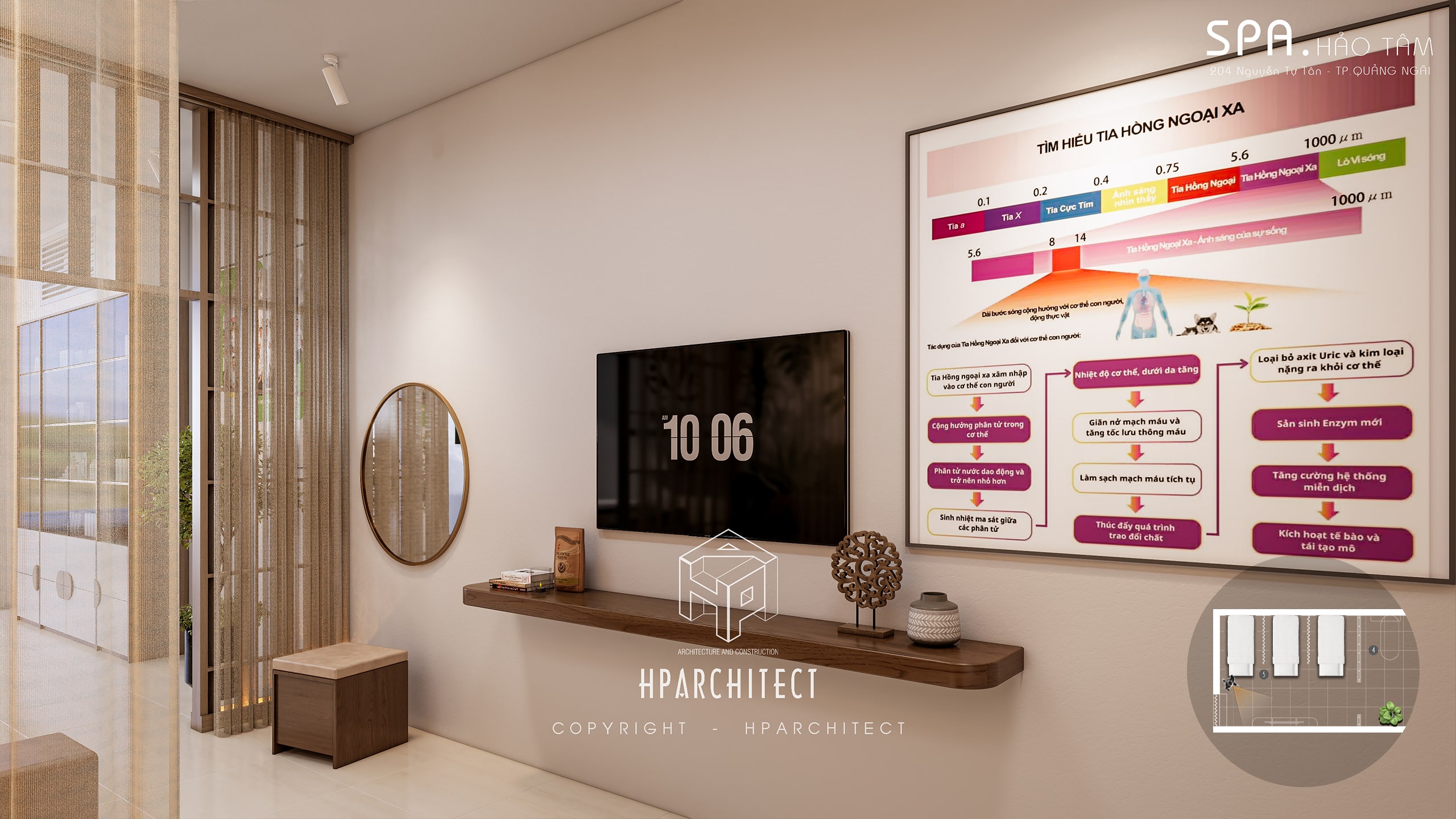Dự án Trung tâm CSSK Hảo Tâm là minh chứng cho giải pháp thiết kế tinh gọn, hiện đại và tối ưu công năng trong không gian nhỏ. Bằng cách kết hợp vật liệu bền vững, ánh sáng thông minh, nội thất tối giản nhưng tinh tế, HPArchitect đã tạo nên một không gian đầy tính nghệ thuật, sang trọng nhưng vẫn đảm bảo sự thư giãn tuyệt đối cho khách hàng.